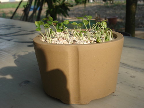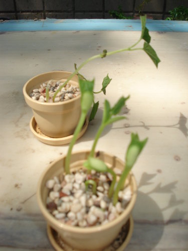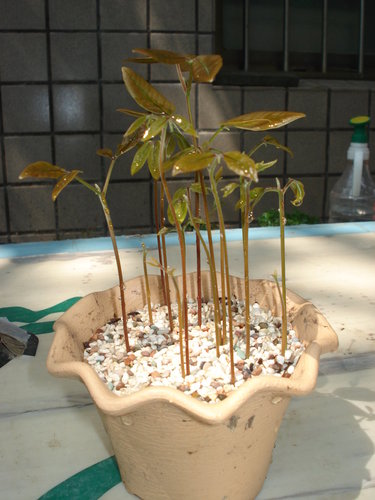 今天早上去看看那些小綠綠.因為離家4天好久不見ㄋ.哇龍眼.木瓜.袖珍苦瓜.都長出來ㄌ喔.因為4天沒澆水.它們全都垂頭喪氣.盆子有點過輕.趕快把盆子擺到水裡緊急吸水.還好恢復生氣ㄌ.第一階段成功.(8/20長出嫩芽 8/24翠綠可人)